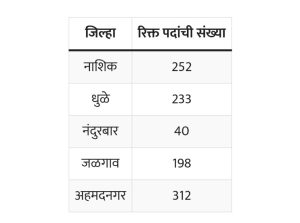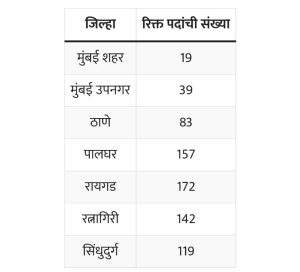 महाराष्ट्र तलाठी भरती:2023साठीच्या रिक्त पदे जिल्ह्याद्वारे स्वतंत्रपणे प्रसिद्ध केलेल्या आहेत. उमेदवार जिल्ह्यानुसार आणि विभागानुसार रिक्त जागांचा तपशील खालील तक्त्यात वाचू शकतात.